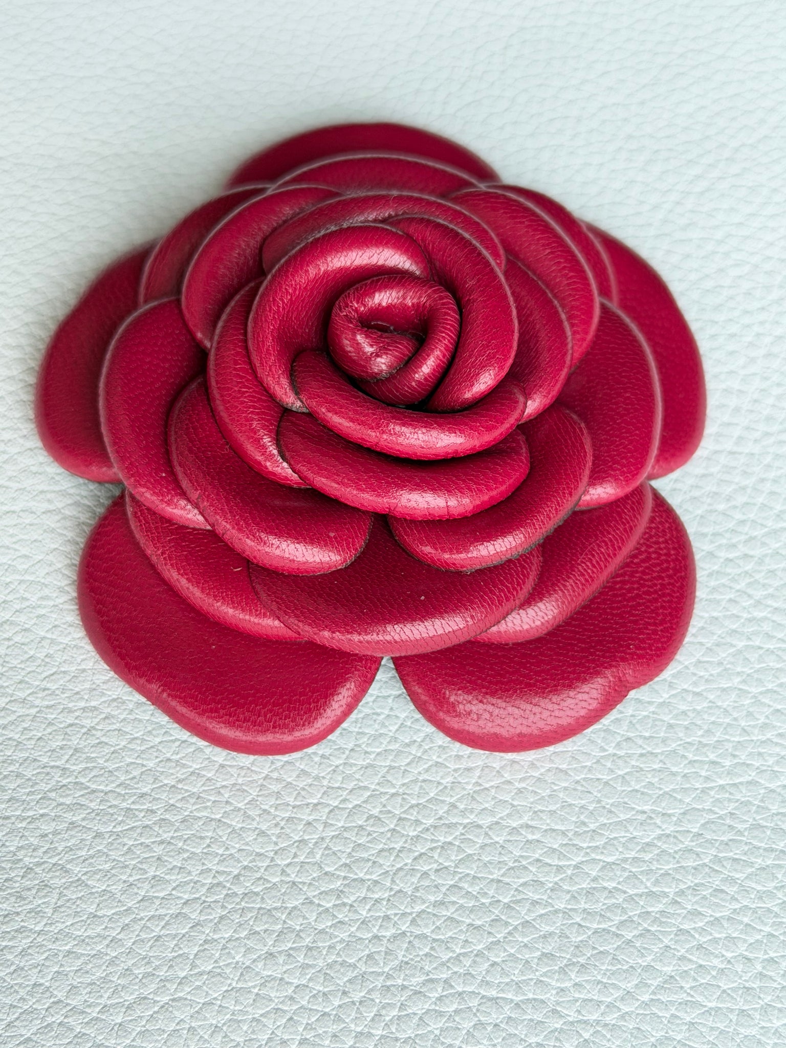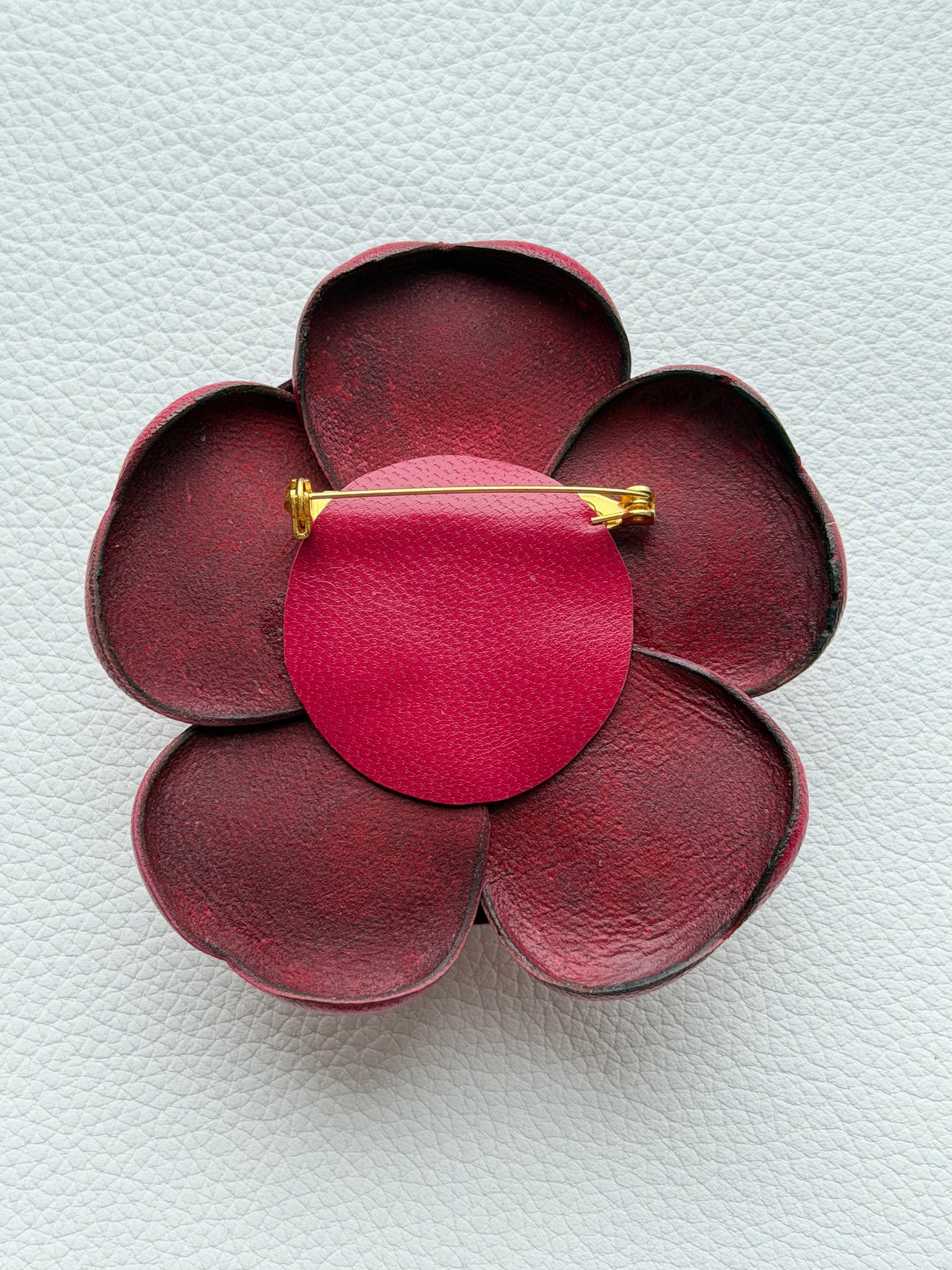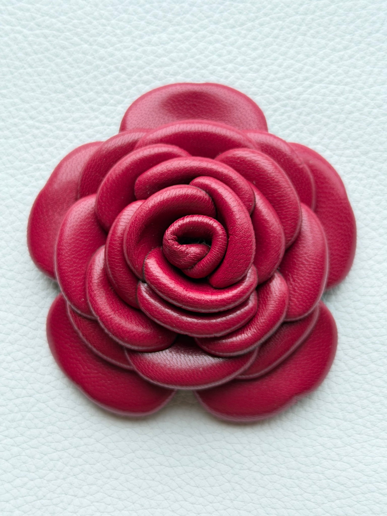 Genuine leather camellia brooch, carefully handcrafted with meticulous attention to detail. Each flower is unique and may slightly vary, yet all are equally beautiful.