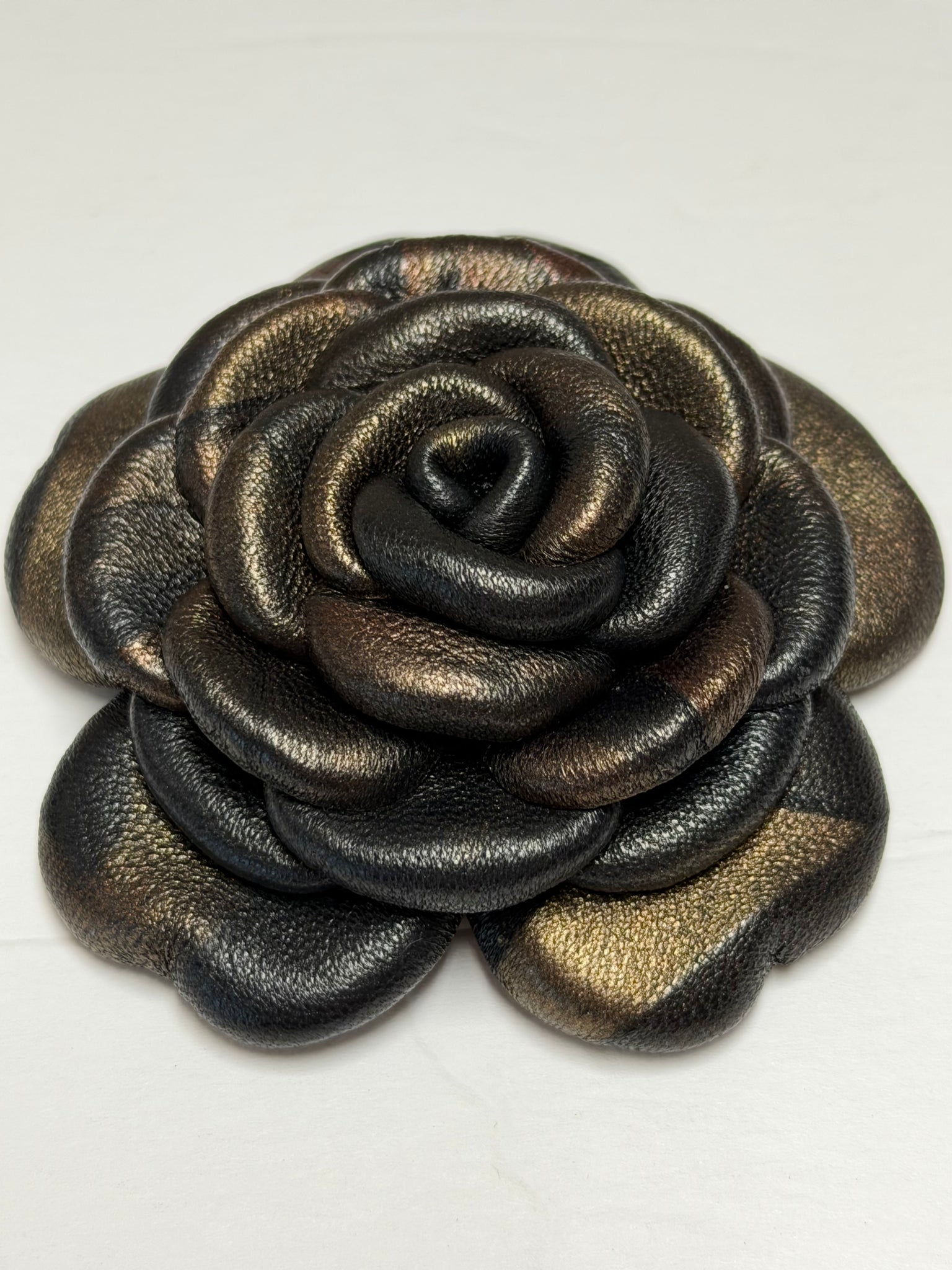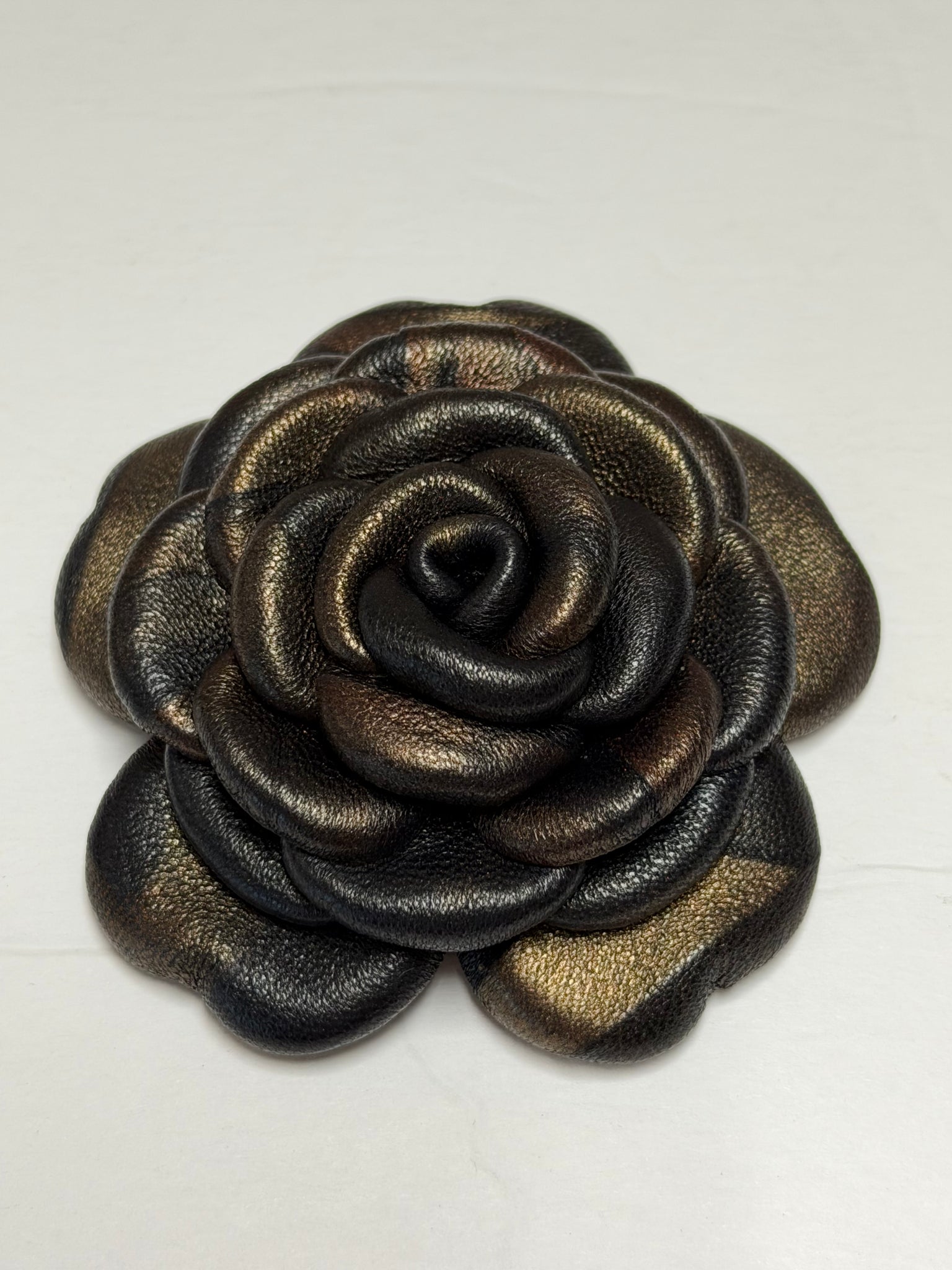 Genuine leather camellia brooch, carefully handcrafted with meticulous attention to detail. Each flower is unique and may slightly vary, yet all are equally beautiful.