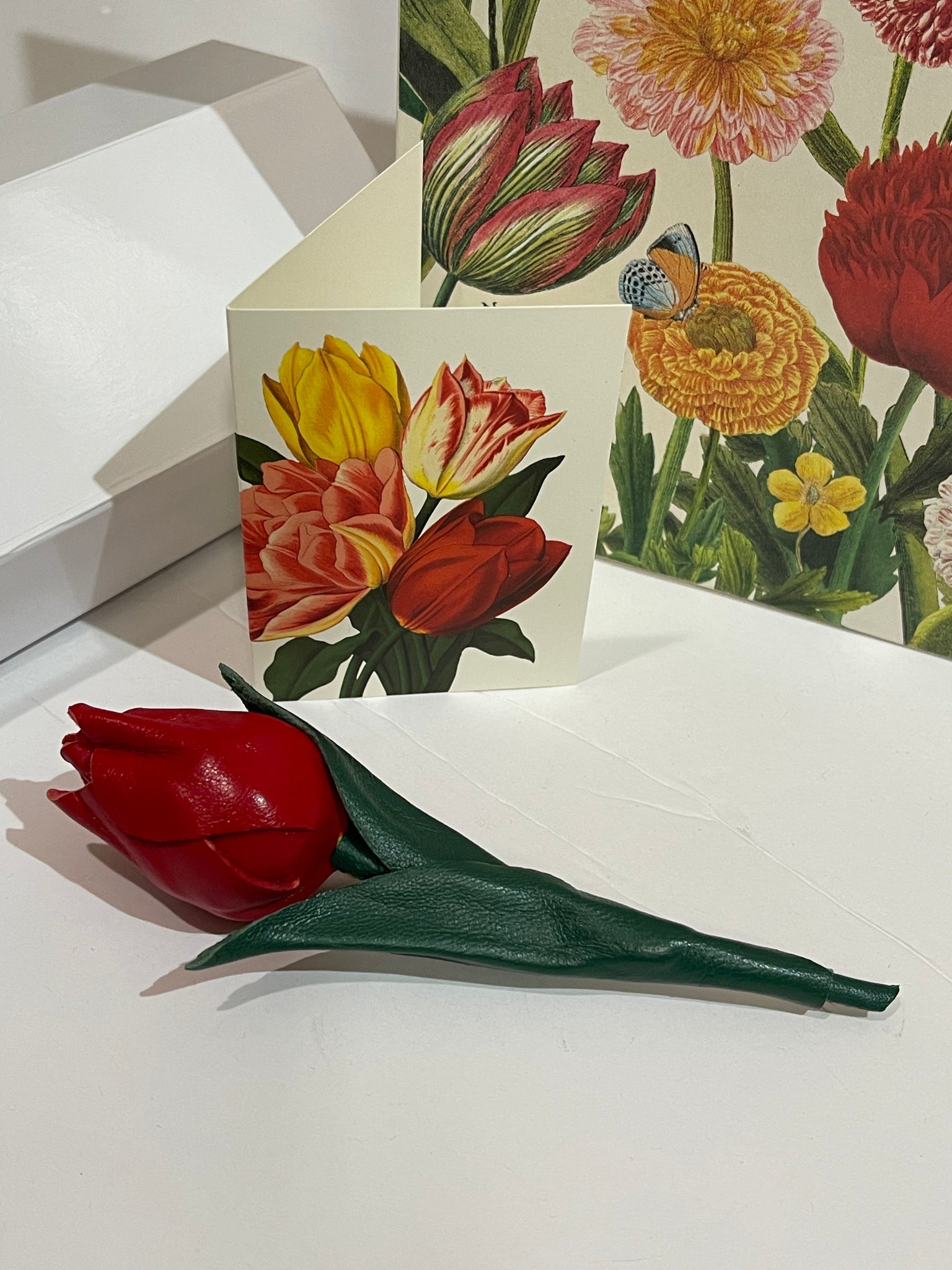 Each petal and leaf is shaped by hand to capture the clean, elegant silhouette of a tulip bud.